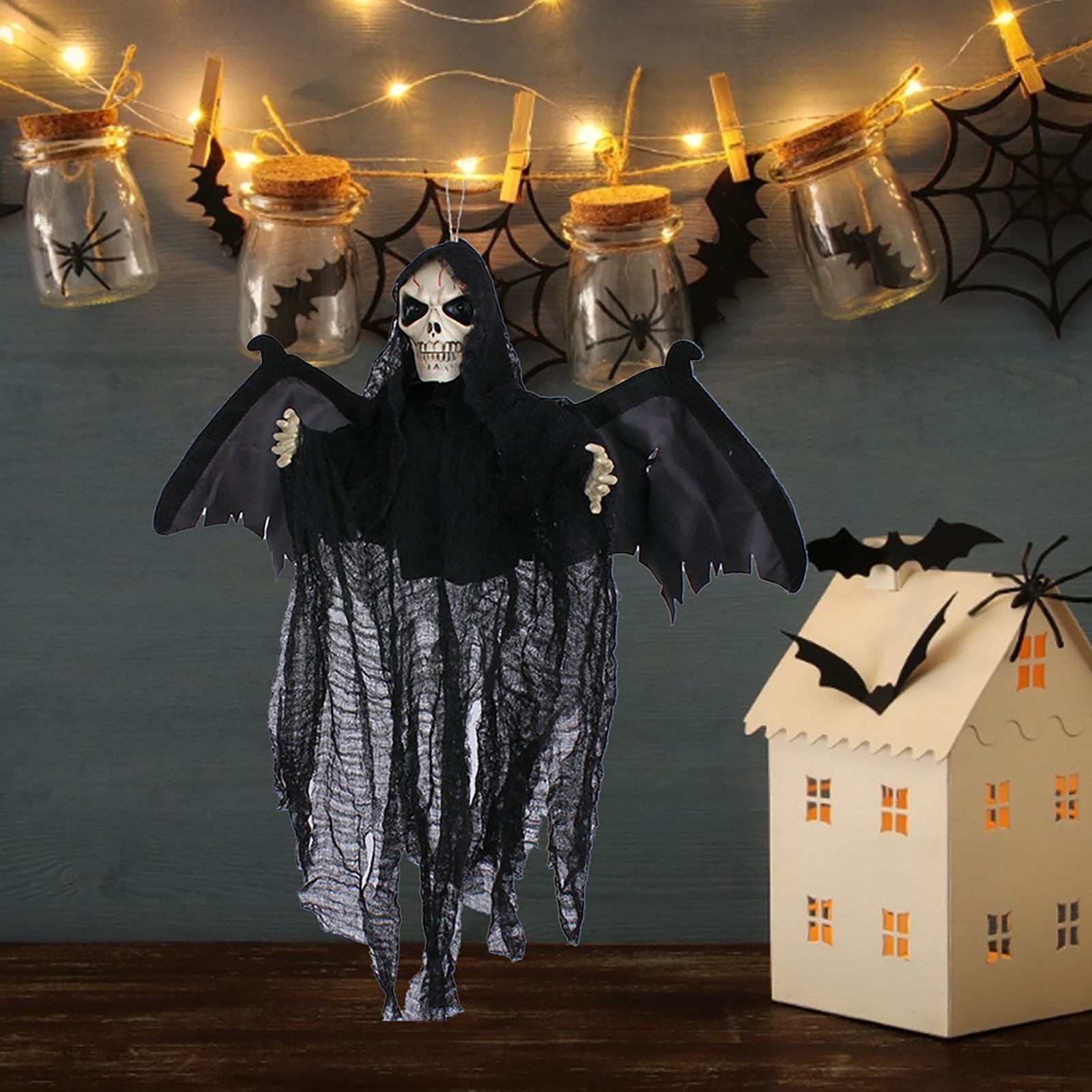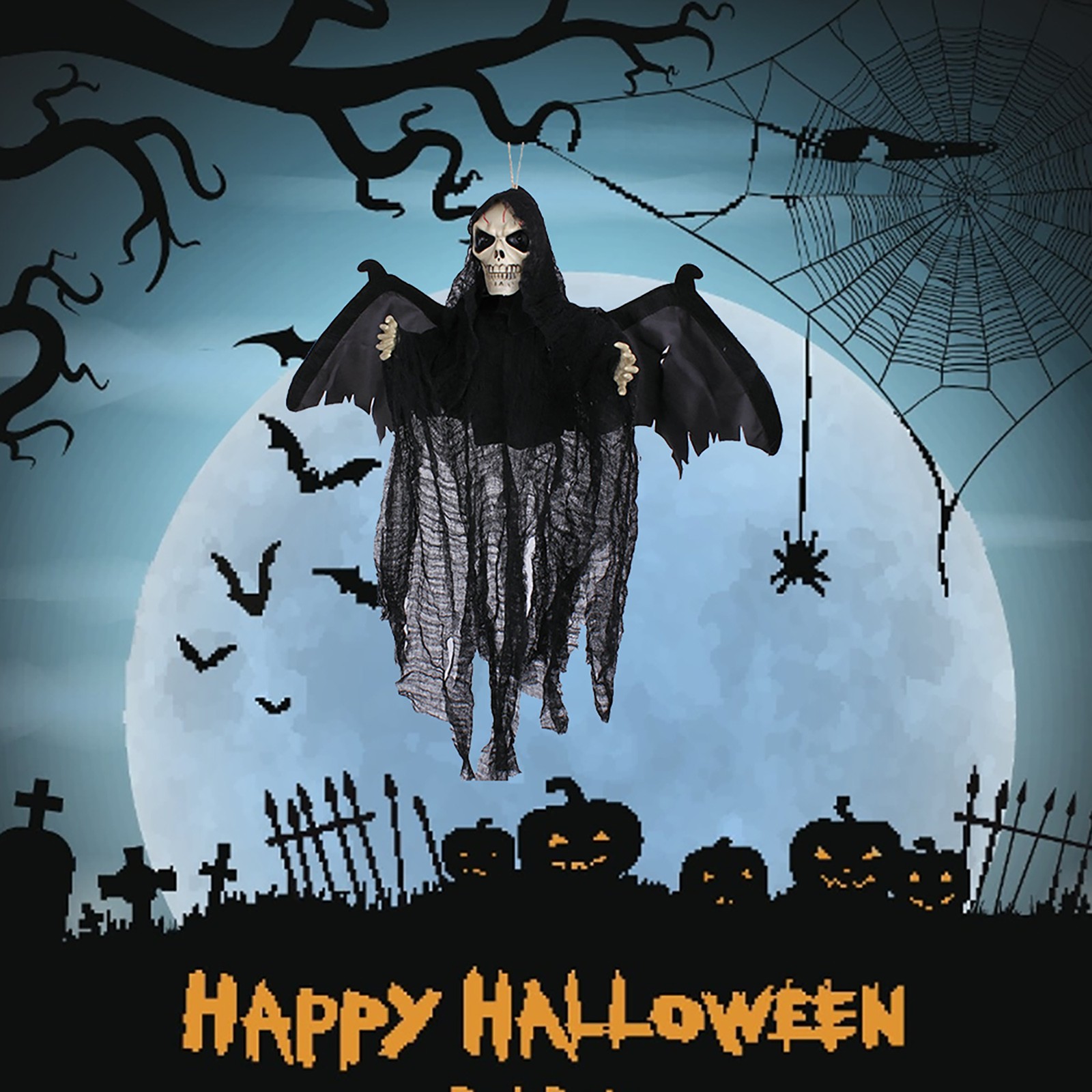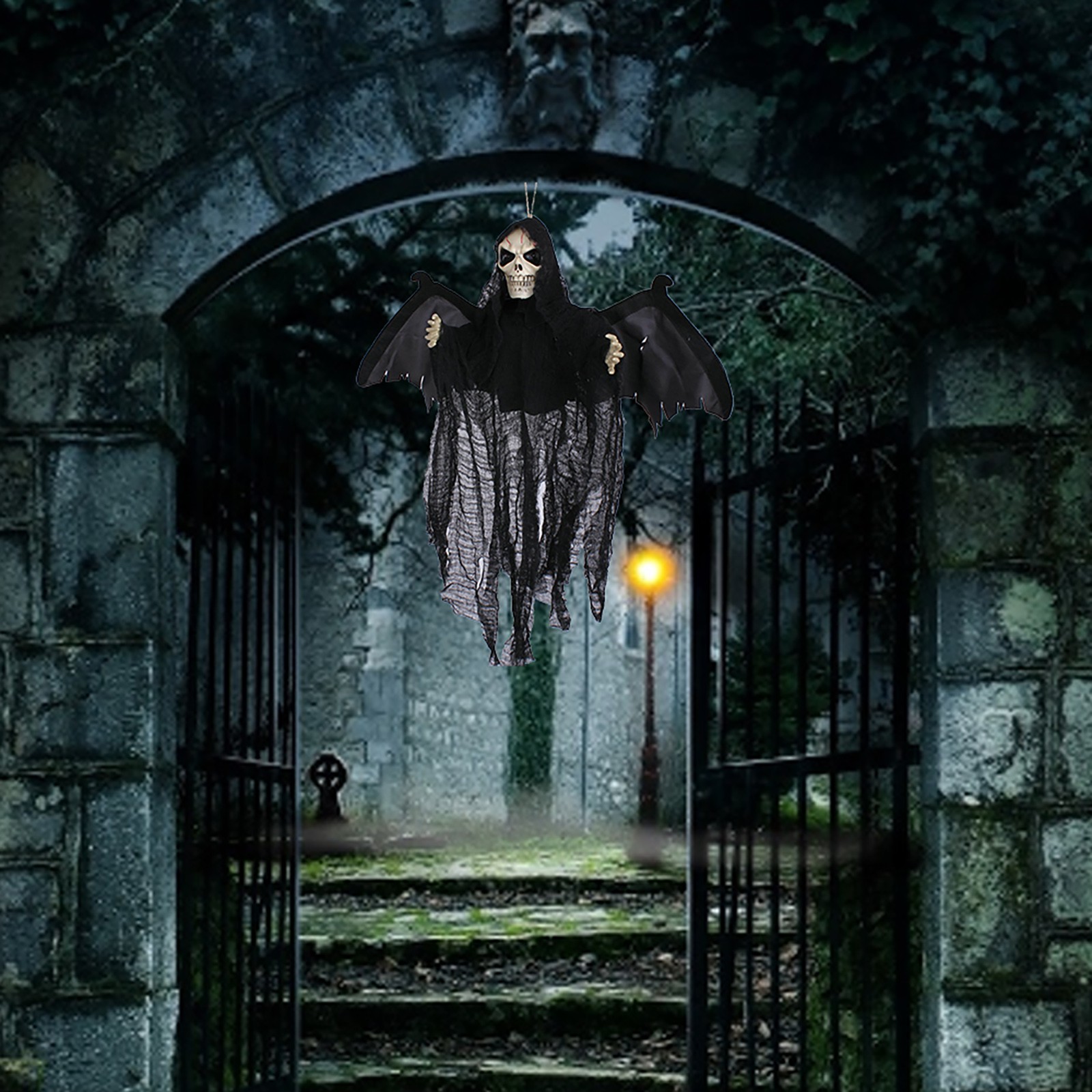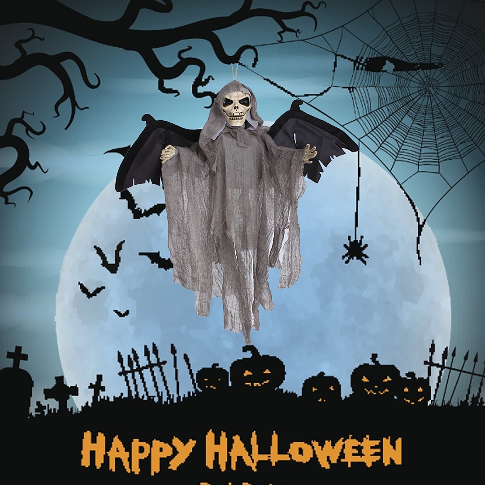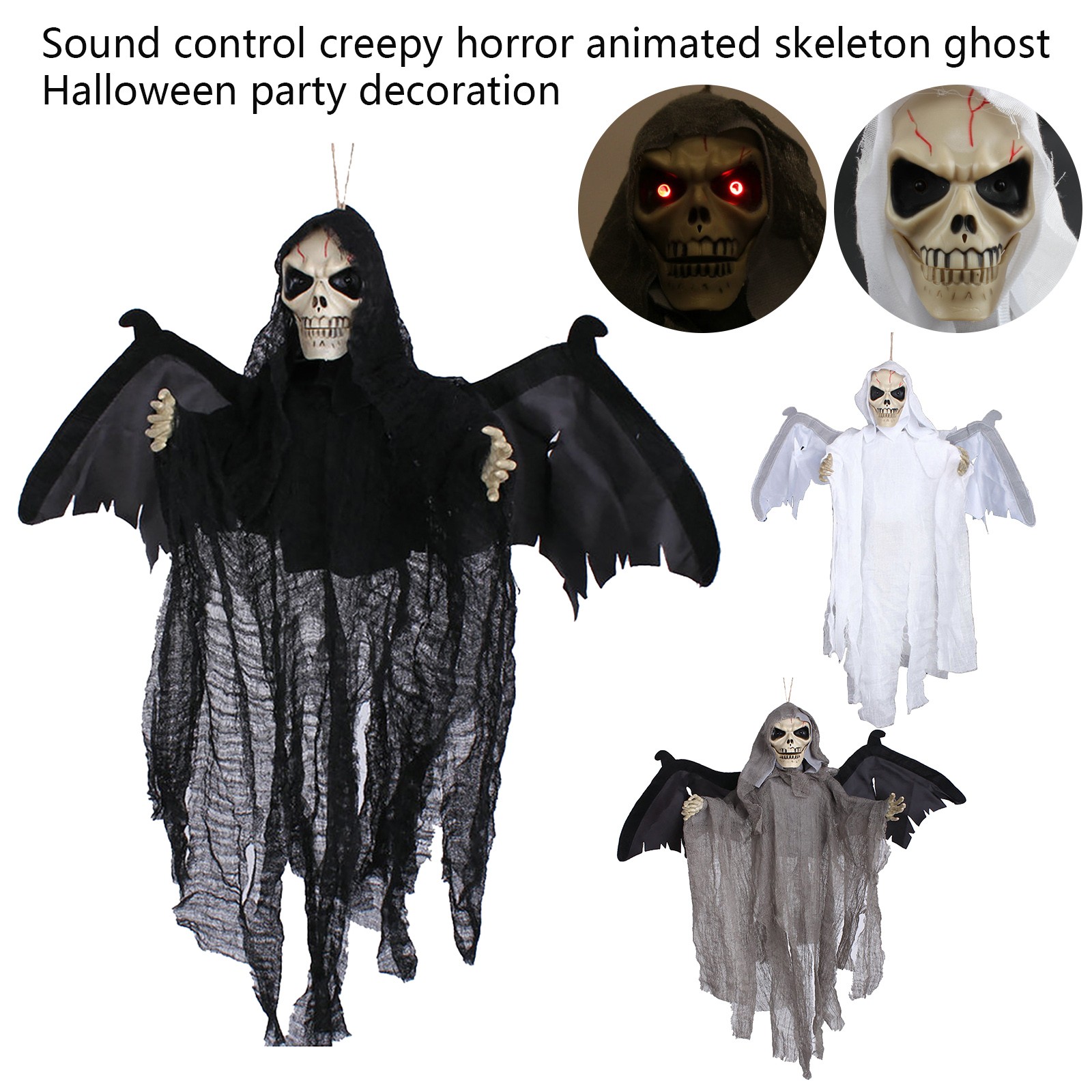 页面的Sound Control Creepy Scary Animated Skeleton Ghost Halloween Party Decoration Halloween horror props Hanging Pendant Decor