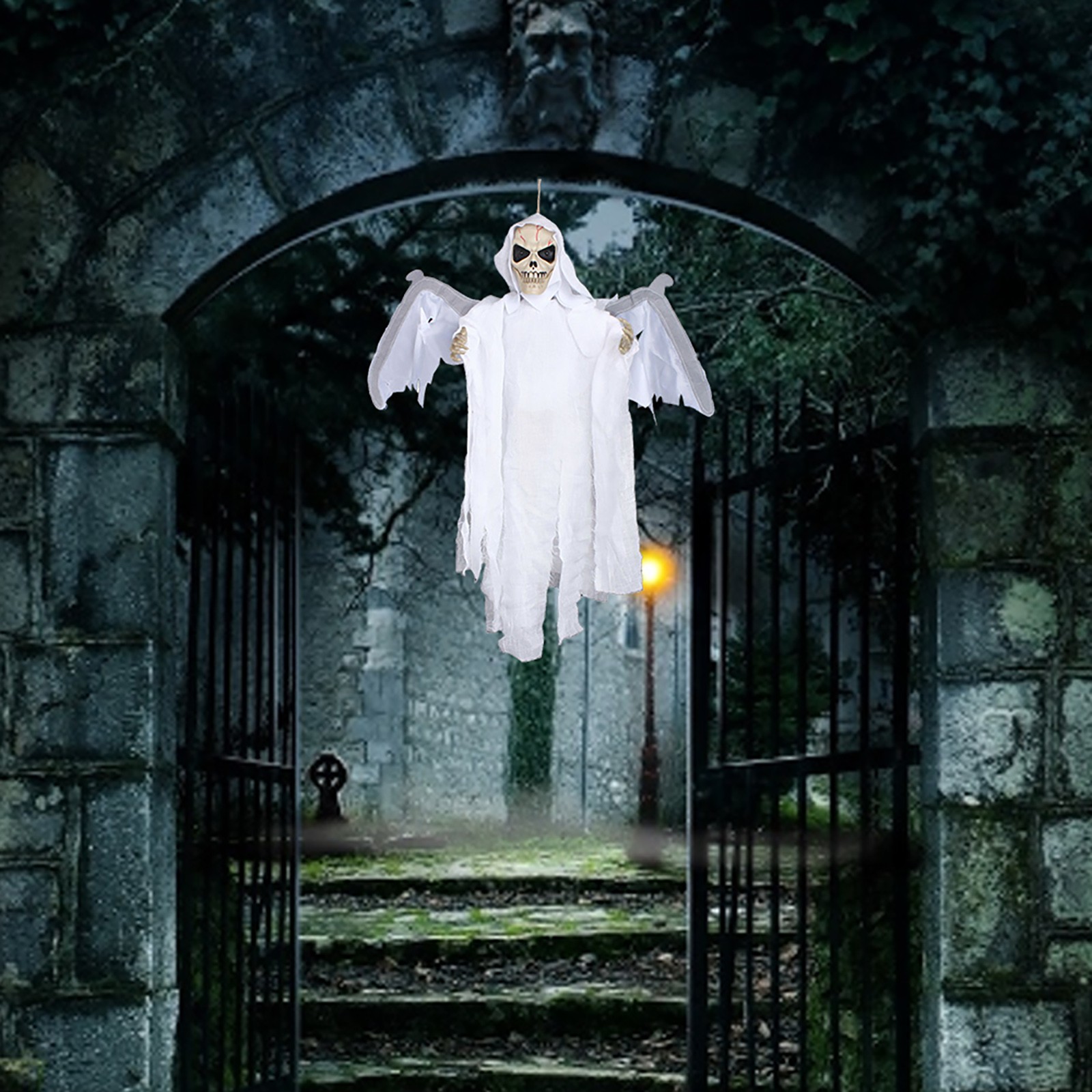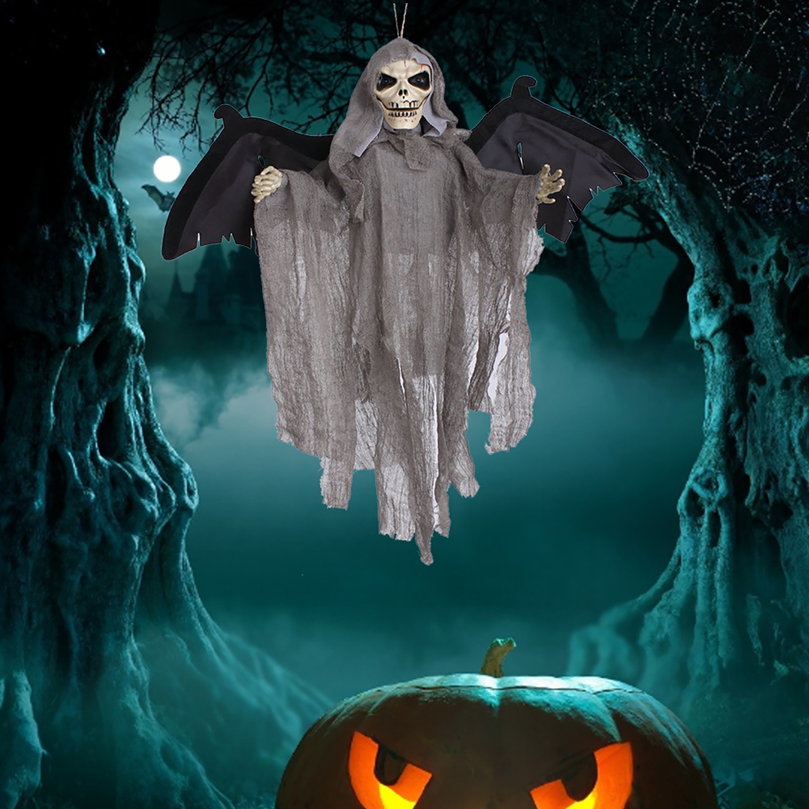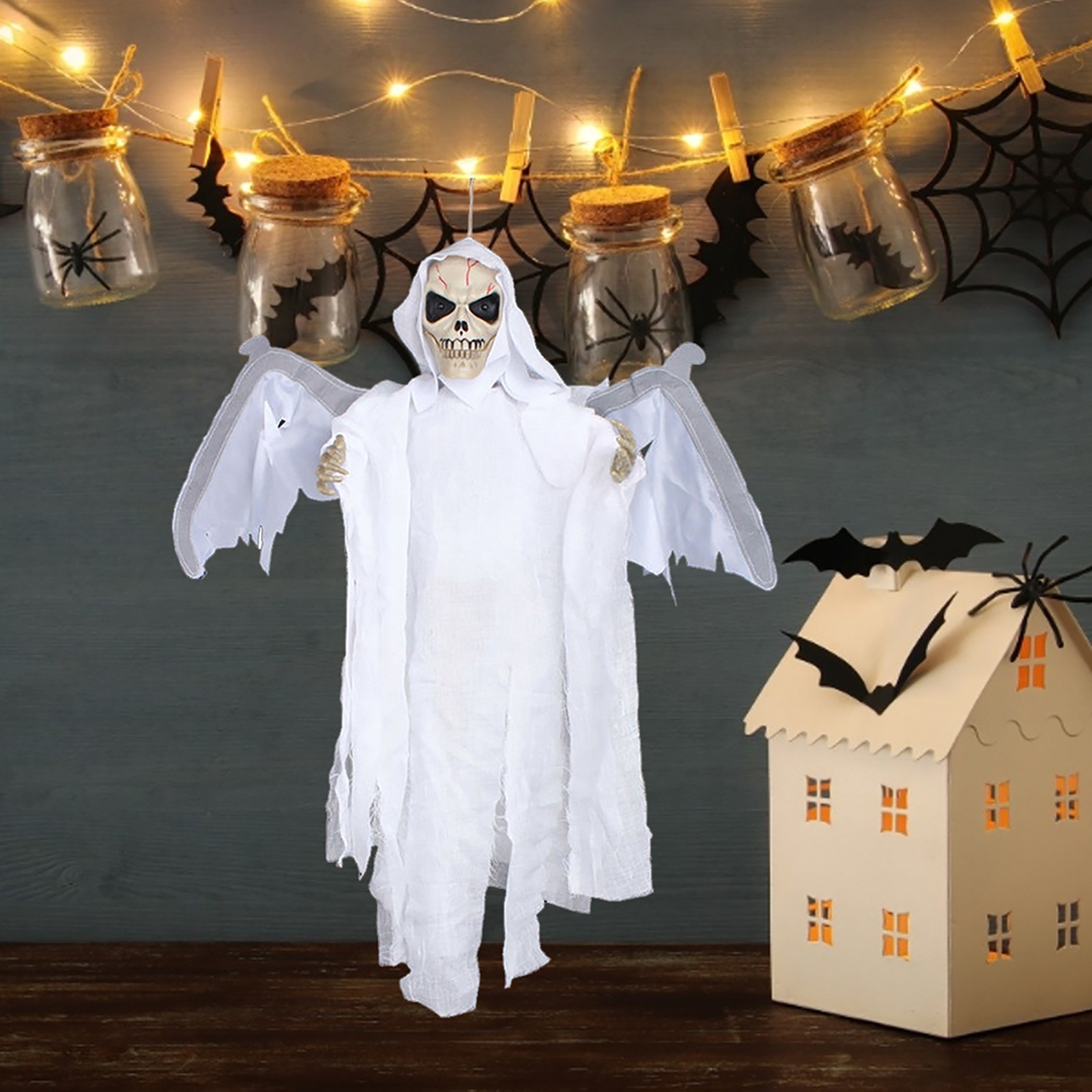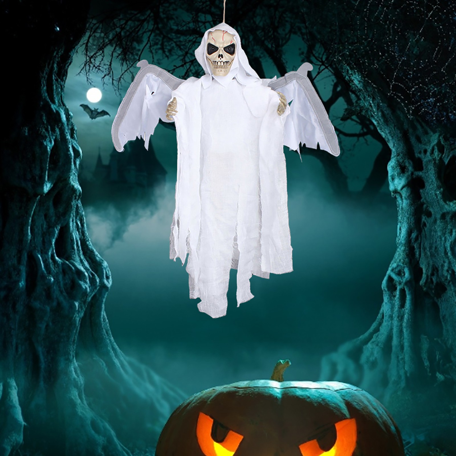Rich textSound Control Creepy Scary Animated Skeleton Ghost Halloween Party Decoration Halloween horror props Hanging Pendant Decor