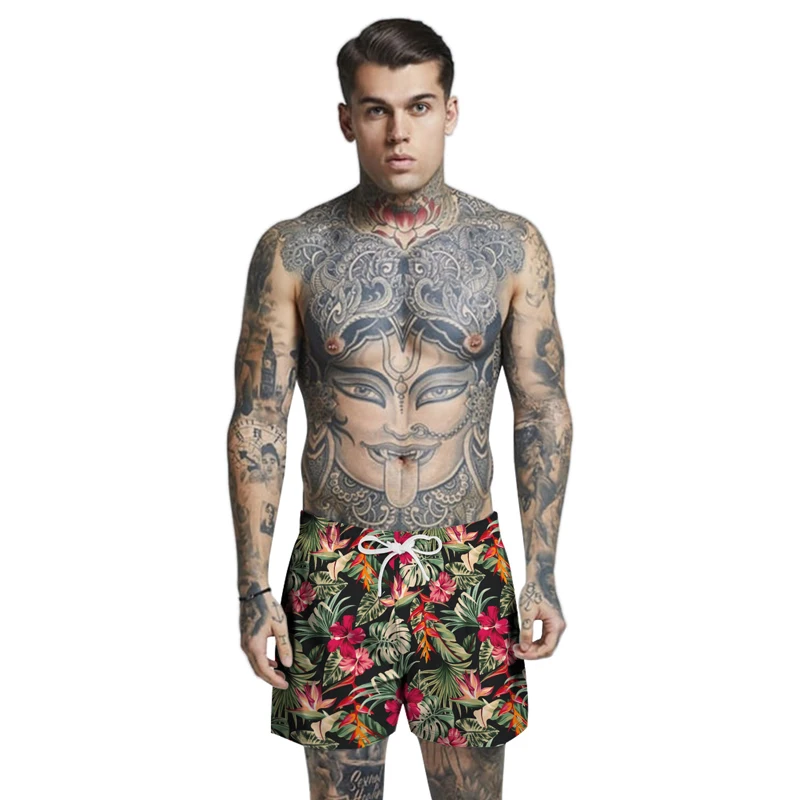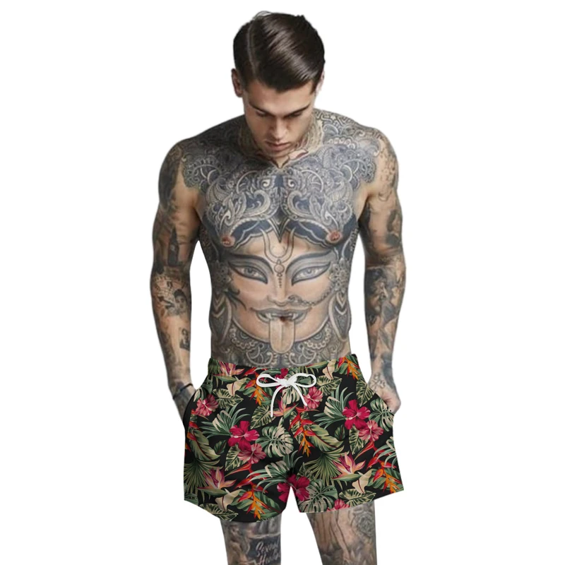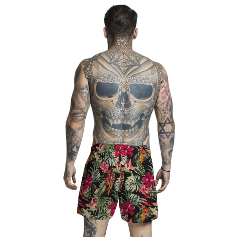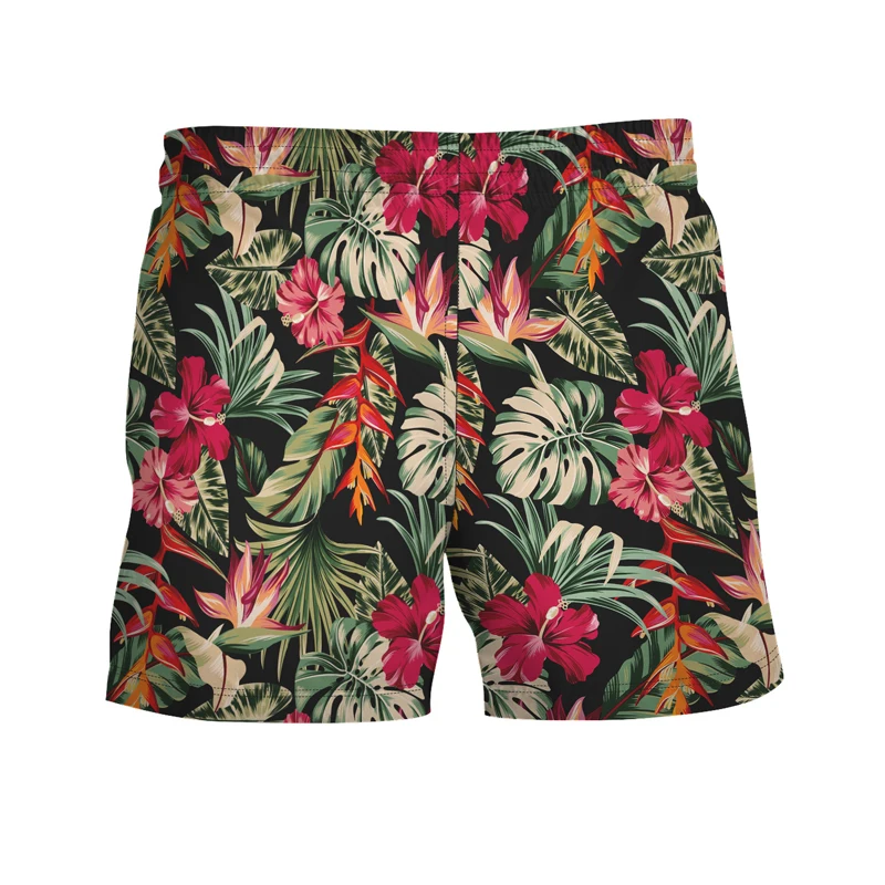 页面的Summer Tropical Plants Print Beach Shorts Men Breathable Comfortable Casual Bathing Shorts with Net Inside Shorts Mens Clothing